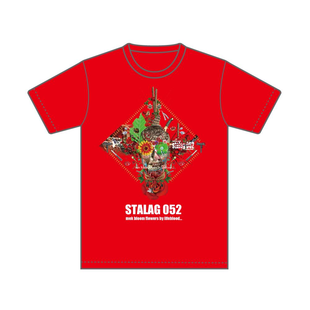 「STALAG RIDDIM 」 往年のReggaeのRiddim STALAG(ドイツの捕虜収容所を意味する)このRiddimはTenor Sawの'Ring The Alarm'をはじめ数々のBig Tuneを生み出した。そのSTALAG Riddimを052 STALAGとして打ちなおし RaggaMac Recordsからリリースされたアーティストの曲を中心に作られた 殺しの1枚「052 STALAG MIX」のジャケット デザインをTシャツに落とし込んだ。